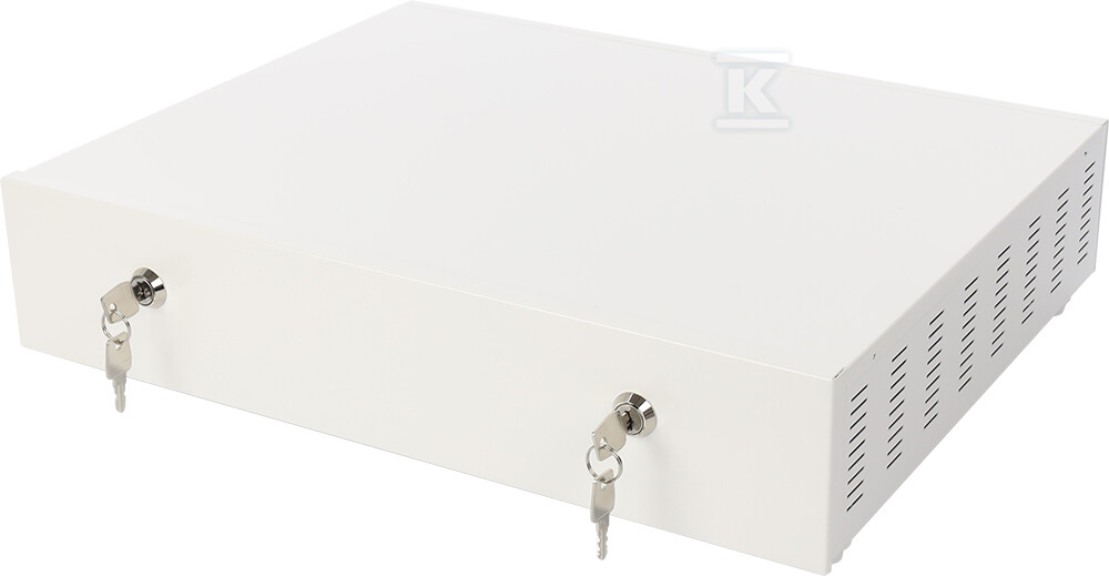 Корпус AWO483 був розроблений з урахуванням зручності інсталяторів і користувачів. Замок забезпечує безпечне закриття, а можливість встановлення додаткового вентилятора ARAW45 (доступного окремо) дозволяє ефективно охолоджувати реєстратор, що особливо важливо у випадку інтенсивної роботи пристрою. Додатковий простір від стіни (18мм) полегшує прокладання кабелів і покращує циркуляцію повітря.