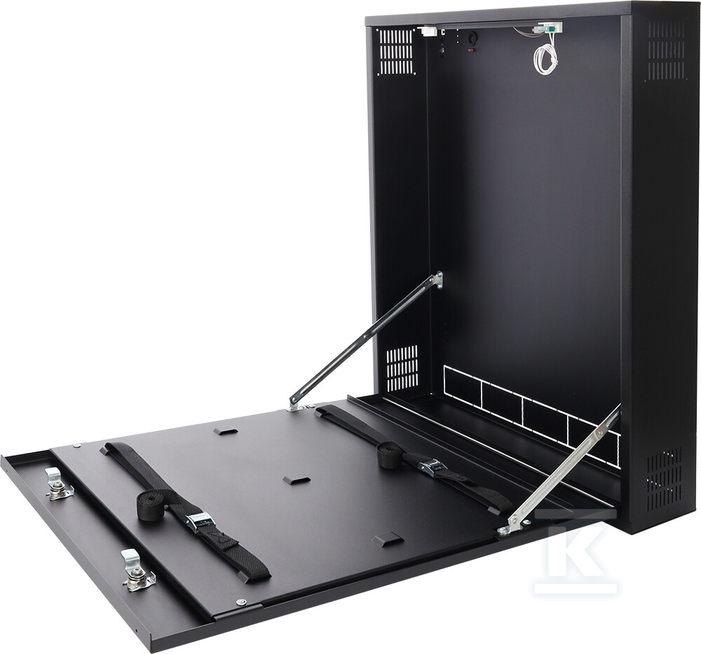 Корпус призначений для настінного монтажу. Його вертикальна конструкція та невелика глибина (121 мм + 14 мм відступу від стіни) роблять його ідеальним для місць, де немає можливості встановлення глибших шаф або шаф 19". Після відкриття корпусу, передня панель залишається в горизонтальному положенні, що полегшує доступ до кнопок на відеореєстраторі. Всередині знаходяться регульовані ремені кріплення, які дозволяють адаптувати його до відеореєстраторів шириною до 470 мм, висотою до 95 мм і глибиною 485 мм. Додатково є можливість встановлення вентилятора ARAW45 (доступного окремо), що забезпечує оптимальне охолодження пристрою.