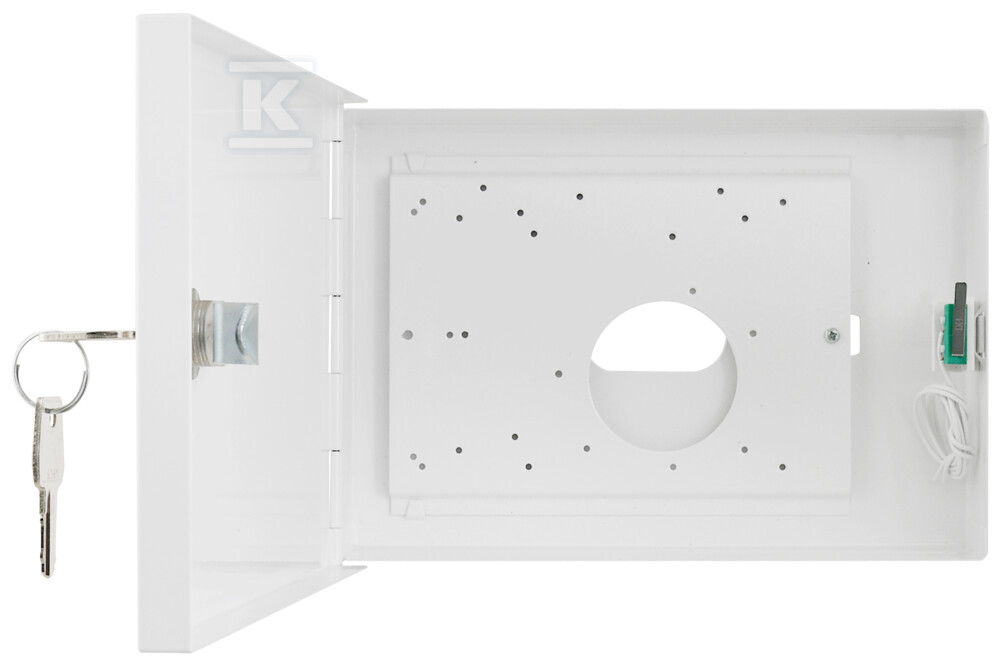 Виготовлений з міцної сталі DC01 товщиною 0,7 мм, корпус забезпечує ефективний захист від механічних пошкоджень та втручання сторонніх осіб. Антисаботажний тампер у вигляді мікровимикача сигналізує про спробу відкриття корпусу, підвищуючи безпеку всієї системи. Додатково, можливість замикання на замок (у комплекті два ключі) є додатковим рівнем захисту. Антикорозійне покриття та порошкове фарбування RAL 9003 гарантують довговічність та стійкість до умов навколишнього середовища.