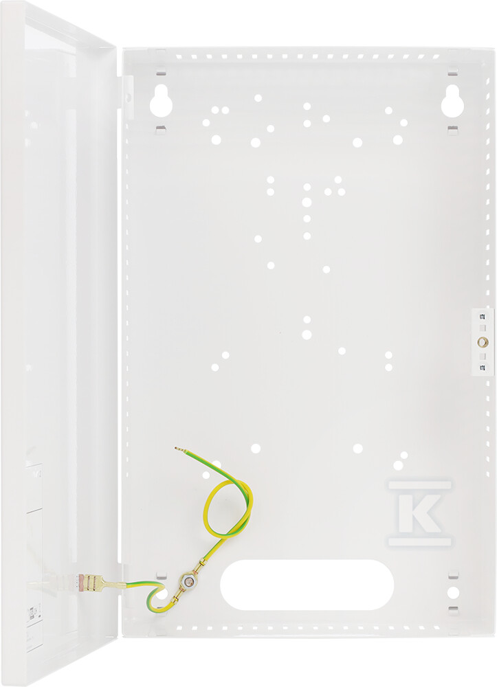 Корпус виготовлений з листової сталі DC01 товщиною 0.7mm і покритий білим лаком RAL9003. Це забезпечує довговічність і стійкість до корозії. Збірна конструкція полегшує доступ до внутрішнього простору у разі потреби обслуговування або модифікації установки. У комплекті є гвинти M3x4 (4 шт.) та M4x4 (4 шт.), що спрощує монтаж блоку живлення всередині корпусу. Додаткова відстань від стіни (8mm) забезпечує належну вентиляцію і запобігає перегріву пристрою. Зовнішні розміри корпусу: ширина 176mm, висота 276mm та глибина 62mm (+/-2mm). Внутрішні розміри: ширина 170mm висота 275mm та глибина 60mm. Вага нетто корпусу становить близько 0.9 kg. Корпус має ступінь захисту IP20, що означає захист від дотику пальцем та від проникнення твердих тіл більших за 12.5 mm.