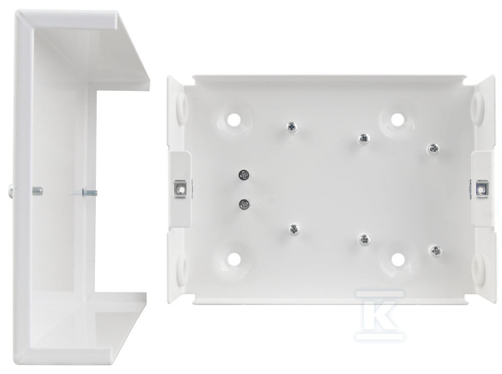 Корпус AWO506 має зовнішні розміри 150x112x31+3 мм (з толерантністю +/- 2мм), що дозволяє легко адаптувати його до існуючих інсталяцій. Виготовлений з листової сталі DC01 товщиною 1,0 мм, покритий антикорозійним захистом у кольорі RAL 9003 (білий), гарантує довговічність та стійкість до умов навколишнього середовища. Чотири кабельні входи діаметром до 10 мм дозволяють організовано вводити дроти лінії гучномовців з максимальним перерізом 2,5 мм². Монтаж здійснюється за допомогою чотирьох отворів діаметром fi 6 мм. Корпус скріплюється за допомогою двох циліндричних гвинтів. Клас захисту IP30 забезпечує базовий захист від дотику та проникнення твердих тіл.