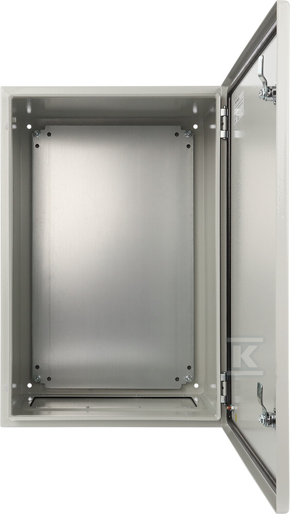 Ця міцна, металева шафа з монтажною пластиною, розмірами 400x600x300 мм, забезпечує надійний захист для ваших пристроїв та інсталяцій. Конструкція шафи, виготовлена зі сталі холодної прокатки SPCC товщиною 1.2 мм, гарантує стійкість до механічних пошкоджень – клас IK10. Сіра структура епоксидно-поліестерової фарби RAL7035 не тільки захищає від корозії, але й забезпечує естетичний вигляд, який добре поєднується з різними оточеннями.