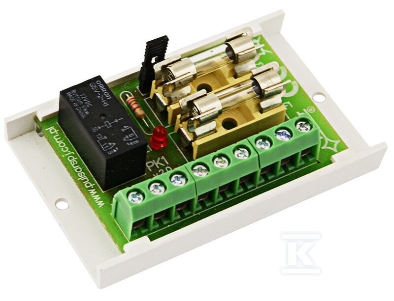 Монтаж модуля простий та зручний – його можна прикріпити за допомогою самоклеючої стрічки або гвинтів. Модуль живиться напругою 10-14 VDC. Реле має перемикаючі контакти (C/NC/NO) та дозволяє перемикати кола з струмом до 2A при напрузі 30V DC або 50V AC. Розміри модуля становлять 70 x 20 x 43 mm (+/-2 mm), що дозволяє легко інтегрувати його з різними корпусами та системами. Гарантія виробника Pulsar K. Bogusz Sp. j. становить 2 роки від дати виробництва.