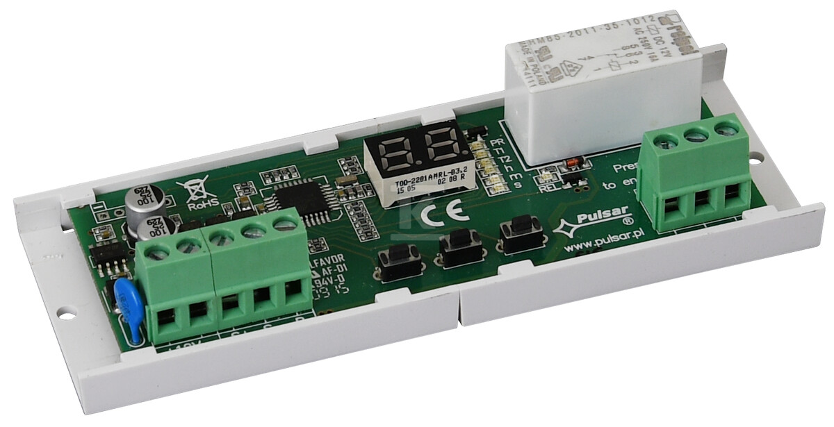 Реле PC1 вирізняється широким діапазоном регулювання часу – від 0,1 секунди до 100 годин – що уможливлює прецизійне керування процесами. Живлення пристрою відбувається від напруги 10-16V DC, а контакти реле витримують навантаження до 10A при напрузі 250V AC або 30V DC. Вбудована пам'ять EEPROM забезпечує запис налаштувань навіть після відключення живлення, усуваючи необхідність повторної конфігурації після кожного ввімкнення. Оптична сигналізація за допомогою світлодіодів та світлодіодний дисплей полегшують моніторинг стану пристрою та поточного встановленого режиму.