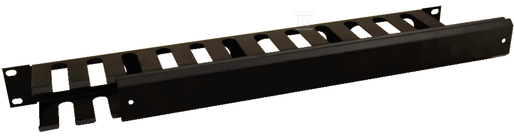 Горизонтальний металевий органайзер кабелів з кришкою 1U – це практичне рішення для управління кабелями в стійках. Він служить для впорядкування та захисту проводів від пошкоджень, що полегшує обслуговування та покращує естетику інсталяції. Виготовлений з міцного холоднокатаного листа, забезпечує надійність і довговічність.Конструкція органайзера складається з гребінчастої панелі та заглушки, утворюючи закриту систему для прокладання кабелів. Монтаж здійснюється спереду, безпосередньо до стійок за допомогою чотирьох гвинтів M6 з шайбами – все необхідне для встановлення входить до комплекту. Чорний колір (RAL 9004) дозволяє органайзеру непомітно вписуватися в оточення стійки.Зовнішні розміри становлять 483 x 44 x 70 мм, а висота – 1U – стандартна одиниця висоти в