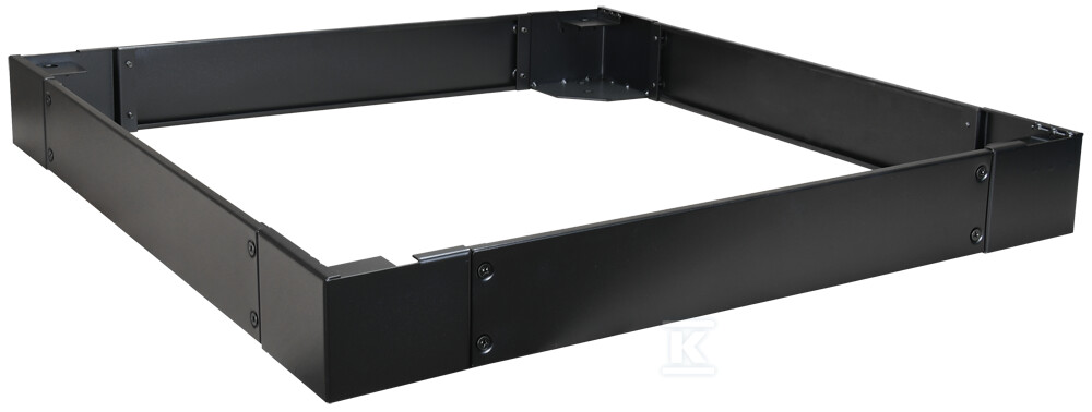 Плінтус виготовлений зі сталі холоднокатаної SPCC, що гарантує міцність і стійкість до навантажень. Оздоблення в кольорі RAL9004 (чорному) забезпечує естетичний вигляд і відповідність більшості серверних шаф. У комплекті є 4 гвинти M12 з шайбами (imbus), що полегшує монтаж до дна шафи.