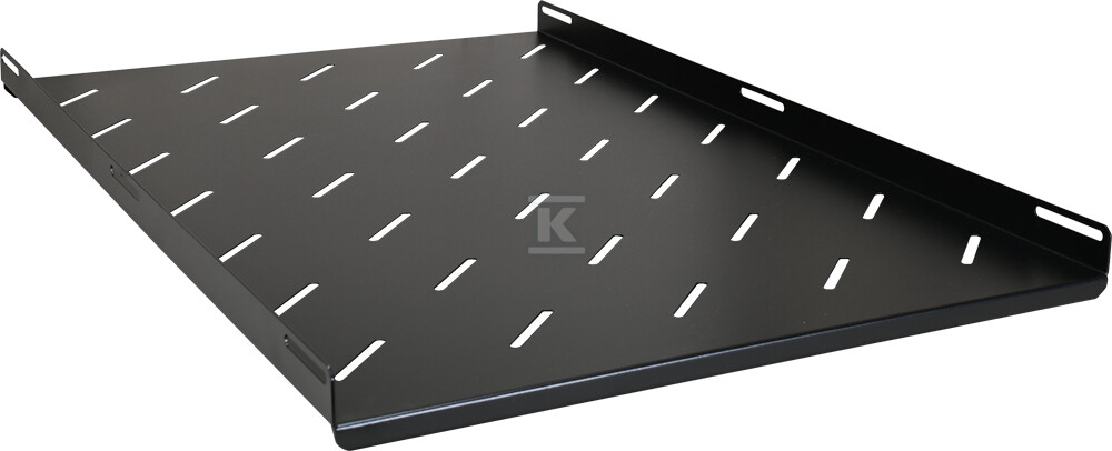 Виконана з міцного сталевого листа товщиною 1,2мм і покрита покриттям RAL 9004 (чорний колір), гарантує довговічність і стійкість до корозії. Монтаж відбувається за допомогою чотирьох точок бічного кріплення до профілів RACK, а в комплекті є всі необхідні елементи – гвинти M6, кліткові гайки (кошики) та пластикові шайби. Завдяки цьому встановлення швидке та інтуїтивно зрозуміле. Полиця є статичною, що забезпечує стабільність навіть при навантаженні до 60 кг.
