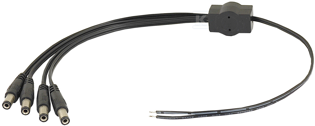 Цей розподільник кабелю, оснащений чотирма штекерами DC 5.5/2.1 мм, є простим та ефективним рішенням для живлення кількох пристроїв з одного джерела. Він знадобиться скрізь, де потрібно розділити напругу живлення, наприклад, у системах моніторингу, освітлення LED або живлення роутерів. Конструкція дозволяє безпечно та зручно підключити навіть чотири приймачі.