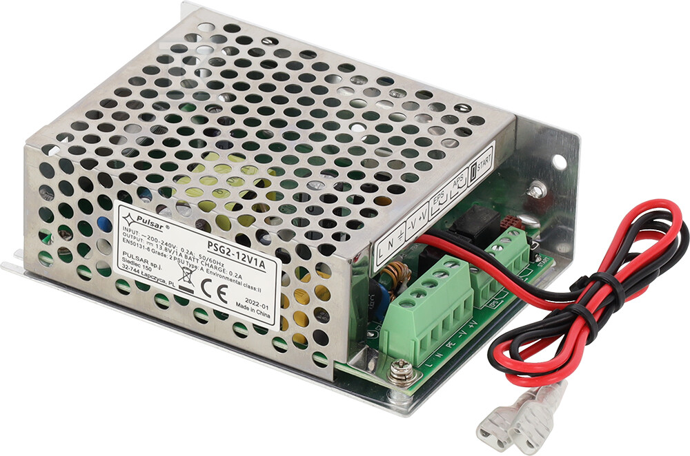 Блок живлення PSG2 характеризується компактною конструкцією для вбудовування розмірами 110 x 78 x 36 мм. Пропонує вихідний струм 1A при напрузі 13,8V DC та струм заряджання акумулятора 0,2A. Вбудовані захисти SCP (від короткого замикання), OLP (від перевантаження), OVP (від перенапруги) та UVP (від занадто низької напруги) захищають як сам блок живлення, так і підключені пристрої. Додатково має технічні виходи типу релейного EPS (аварія мережі AC) та APS (аварія акумулятора), що дозволяють віддалено контролювати стан живлення. Висока ефективність на рівні 86% перекладається на менші втрати енергії та нижчі експлуатаційні витрати.
