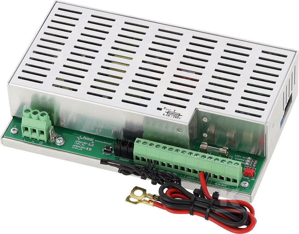 Буферний блок живлення PSG3-12V5A-D від Pulsar – це надійний пристрій, призначений для забезпечення безперебійного живлення в системах сигналізації про вторгнення та контролю доступу (ССВІ та КД). Конструкція блоку живлення відповідає вимогам норм EN50131-6 (ступінь 1-3) та EN60839-11, що гарантує його правильну роботу в критичних застосуваннях. Пристрій ідеально підходить для живлення пристроїв, які потребують стабілізованої напруги 12V DC.