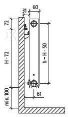 Радіатор PURMO CV11-лівий 600x500, потужність нагріву: 509 Вт (75/65/20°C), сталевий панельний радіатор з нижнім підключенням, PURMO Ventil Compact, білий RAL9016 F071106005010310