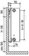 Purmo Ventil Compact (CV) - кімнатні сталеві панельні радіатори з нижнім або боковим підключенням. Вони є ідеальним обладнанням для системи опалення будинку. Ці кімнатні обігрівачі рекомендовані як опалювальні прилади, що встановлюються в спальнях, вітальнях, кухнях. Монтаж можливий як на стіні, як підвісні радіатори, опціонально можна отримати стоячі радіатори, встановивши їх на підлогу на спеціальні підставки. Кімнатні обігрівачі Purmo мають бічні поверхні, покриті кришками, і верхню поверхню, покриту кришкою типу гриль. Вони доступні в широкому асортименті типів і розмірів, тому легко підібрати радіатор для будь-якого розміру приміщення. Радіатори CV оснащені чотирма бічними і двома нижніми підключеними отворами з різьбою 1/2". Можливе замовлення оцинкованого виконання для установки в