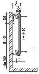 Purmo Hygiene (H) - сталеві панельні радіатори без конвекційних елементів і кришки, призначені для використання в медичних закладах та інших закладах з підвищеними гігієнічними вимогами. Гігієнічні радіатори Purmo Hygiene підключаються збоку. Чотири бокових отвори в кутах радіатора з внутрішньою різьбою 1/2" дозволяють підключати з кожного боку. Є можливість замовити оцинкований варіант для установки в приміщеннях з підвищеною вологістю. Технічні характеристики панельних радіаторів Purmo Higiene (H): Матеріал: високоякісний холоднокатаний низьковуглецевий сталевий лист глибокої витяжки відповідно до PN-EN 10130 Товщина листа: з якого пресуються пластини радіатора: відповідно до PN-EN 442, а конвекційне ребро виготовлене з: відповідно до PN-EN 442 Відстань між