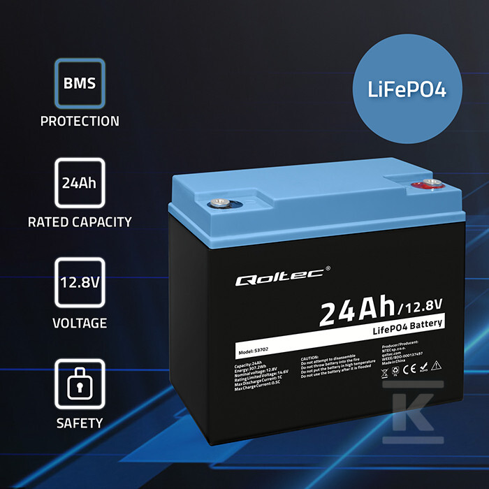 Акумулятори LiFePO4 Qoltec вирізняються високою продуктивністю та тривалим терміном служби. Вбудована система BMS (Battery Management System) контролює роботу елементів, захищаючи їх від перегріву, перезаряду та глибокого розряду. Завдяки цьому акумулятор зберігає оптимальну продуктивність протягом тривалого часу. Широкий діапазон робочих температур робить його придатним як для використання всередині будівель, так і в більш вимогливих зовнішніх умовах.
