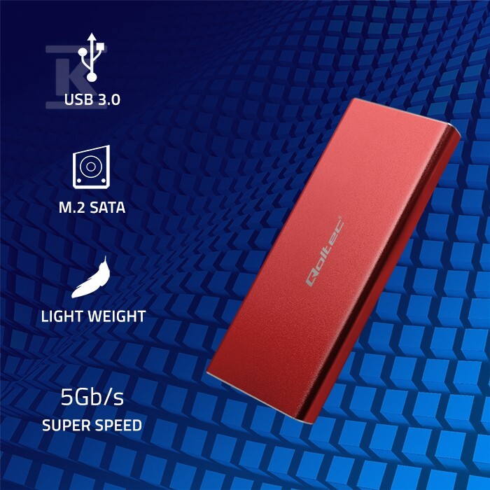 Алюмінієвий корпус/Кейс для диска M.2 SSD/SATA/NGFF/USB 3.0/Super speed/2TB/Червоний QOLTEC 51831