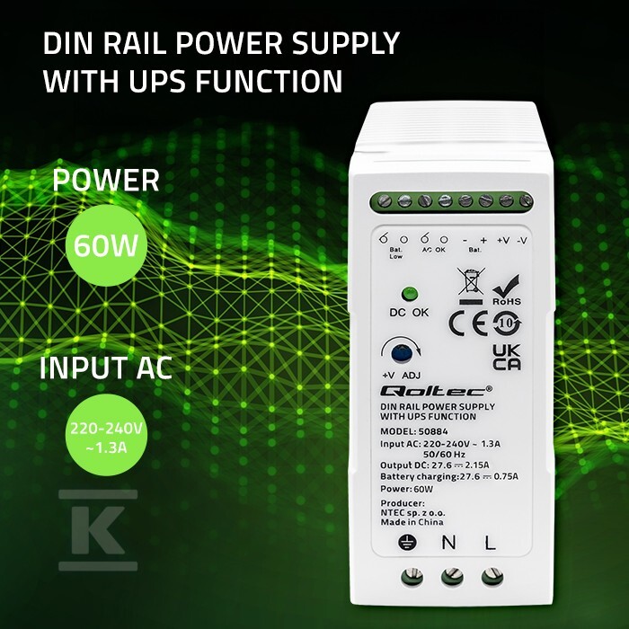 Блок живлення на DIN-рейку з функцією ДБЖ/60W QOLTEC 50884