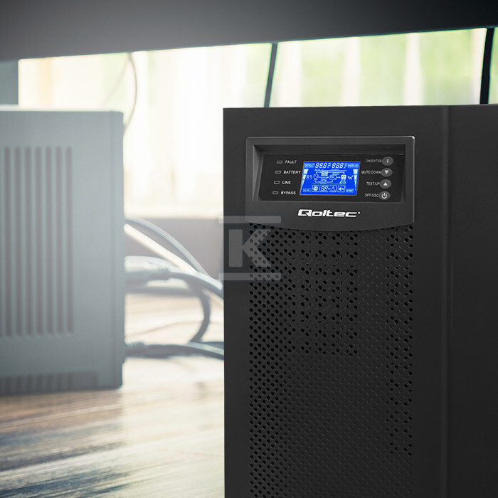 UPS Qoltec вирізняється нульовим часом перемикання на живлення від батареї, що означає, що підключені пристрої не відчують навіть короткочасної перерви в електропостачанні. Вбудований дисплей LCD забезпечує поточний доступ до інформації про стан пристрою та параметри роботи. Додатково, джерело живлення має порт USB для комунікації з комп'ютером та можливість встановлення карти SNMP (продається окремо – код продукту 50389) для віддаленого моніторингу та управління. Функція EPO (Emergency Power Off) дозволяє аварійне вимкнення джерела живлення в кризових ситуаціях.