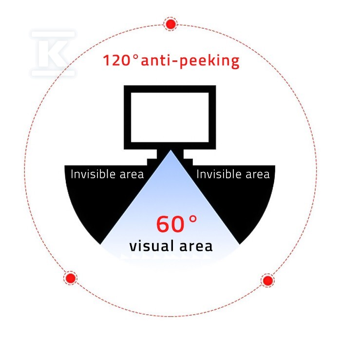Фільтр конфіденційності Qoltec – це не лише захист від сторонніх поглядів. Виготовлений з високоякісного матеріалу PET (Поліетилентерефталат) товщиною 0.5 мм, він також захищає екран від подряпин, пилу та забруднень. Крім того, він оснащений антибліковим покриттям, яке зменшує втому очей під час тривалої роботи. Конструкція, заснована на технології мікрожалюзі, ефективно затемнює зображення під кутом, забезпечуючи конфіденційність та безпеку даних. Фільтр складається з 8 шарів, які блокують шкідливе випромінювання, що випромінюється екраном.