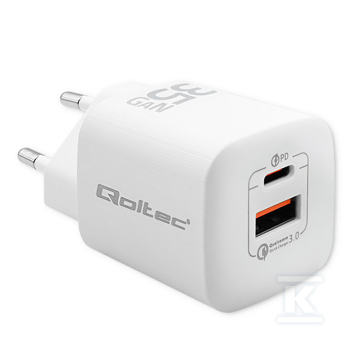 Мережевий зарядний пристрій 35W GaN ULTRA/5-20V/2.25-3A/1 x USB Type C PD/1 x USB QC 3.0/Білий QOLTEC 50763