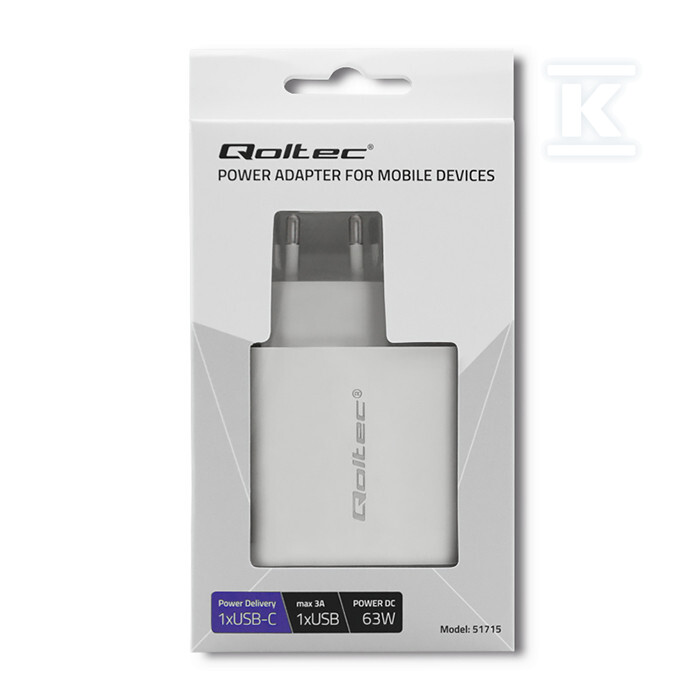 Мережевий зарядний пристрій 63W/5-20V/1.5-3A/USB Type C PD/USB QC 3.0/Білий QOLTEC 51715