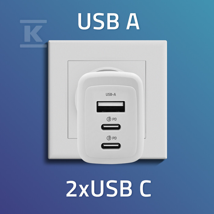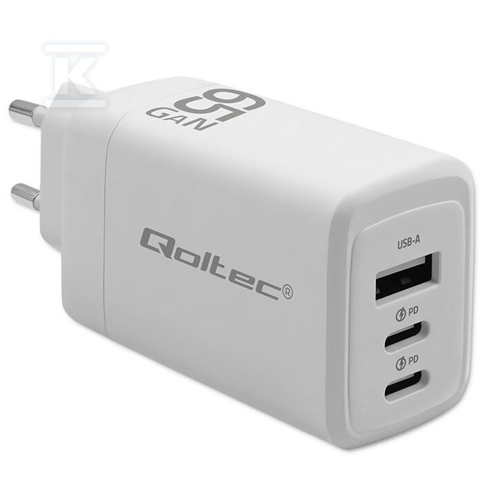 Мережевий зарядний пристрій 67W GaN/5-20V/3-3.25A/2 x USB-C PD/1 x USB QC 3.0/Білий QOLTEC 51822