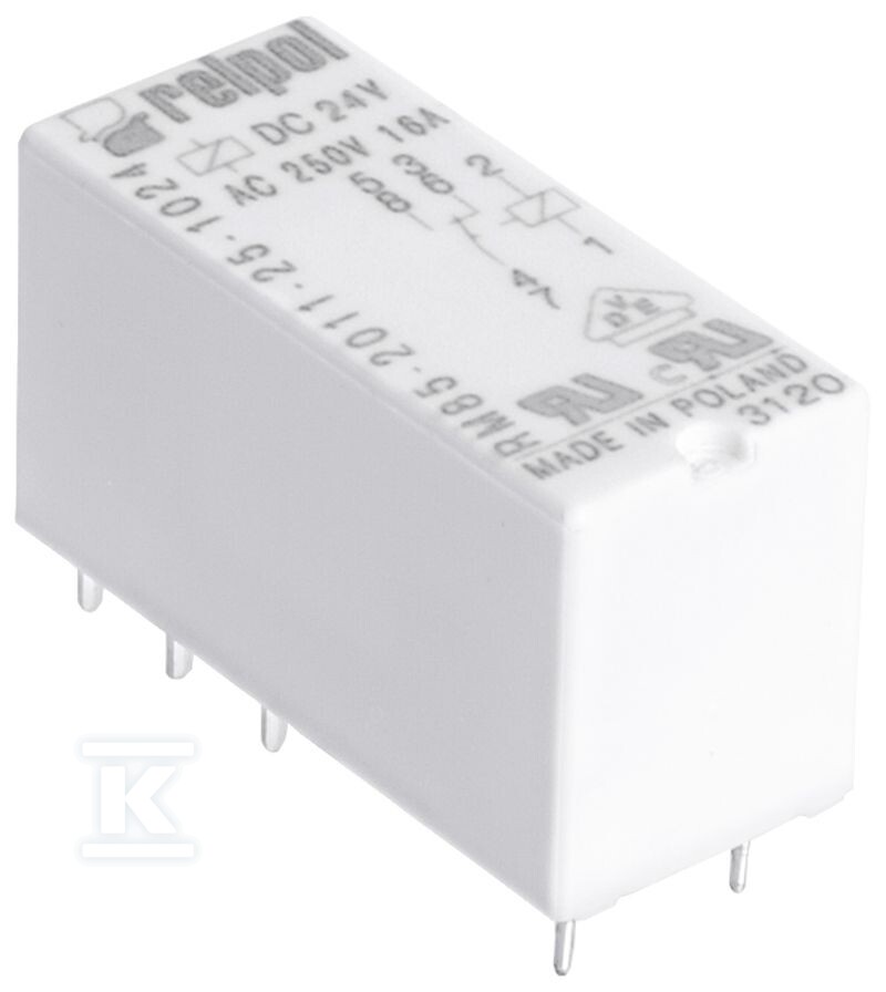 RM85-2021-35-1006 Реле електромагнітне мініатюрне для друкованої плати та розетки. Крок 5 мм. Висота 15,7 мм. Вихід: 1 NO - один NO контакт - контакти: 11(7)/21(4)-14(8)/24(5), AC1 - 16 A / 250 V, DC1 - 16 A / 24 V. Вхід / котушка - контакти: A1 (1) - A2 (2), напруга живлення Un - 6 V DC . Розміри: 29 x 12,7 x 15,7 мм. Матеріал контакту: AgNi. IP 67. Варіанти кріплення розеток: EC50, GD50, PW80 - для друку, GZP80 (push-in), GZT80, GZM80, GZS80, GZF80 - кріплення на рейку 35 мм або прикручування до плати одним гвинтом М3, GZMB80 - безгвинтове кріплення розетки на рейку 35 мм. Примітка: в реле є гальванічні з'єднання контактів 11 з 21, 12 з 22 і 14 з 24. Розміри комплекту реле + розетка + затискачі вказані в описі обраної розетки.