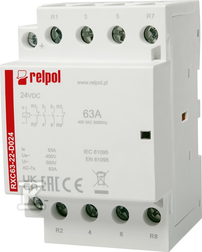 Завдяки напрузі котушки 24 V DC, контактор сумісний з широким спектром систем керування низькою напругою. Номінальний термічний струм на рівні 63A гарантує стабільну роботу навіть при великих навантаженнях. Конструкція контактів (2NO + 2NC) дає можливість реалізації різних схем керування, збільшуючи функціональність всієї системи. Вага пристрою 330г.