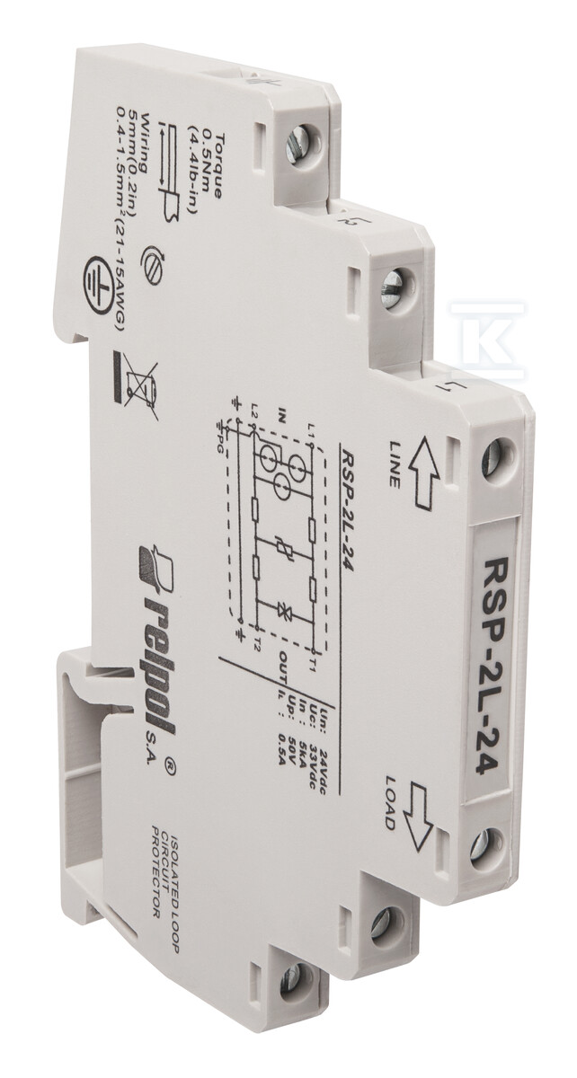 Обмежувач RSP-2L-24 характеризується номінальною робочою напругою DC на рівні 24 В, а максимальна робоча напруга становить відповідно 33 В DC та 23 В AC. Він здатний витримати імпульсний струм величиною 0,5 кА та номінальний піковий струм розряду на рівні 10 кА. Час реакції обмежувача становить менше 1 нс для лінії до лінії та менше 100 нс для лінії до точки заземлення. Ступінь захисту корпусу – IP20.