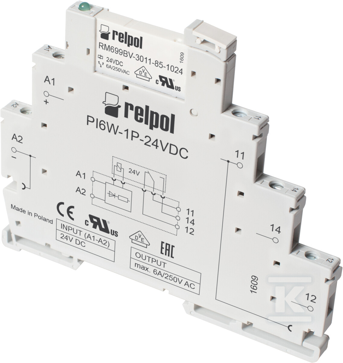 Інтерфейсний реле тонкопрофільний 1P 6A 24V AC/DC IP20 PIR6W-1P-24VAC/DC 856065