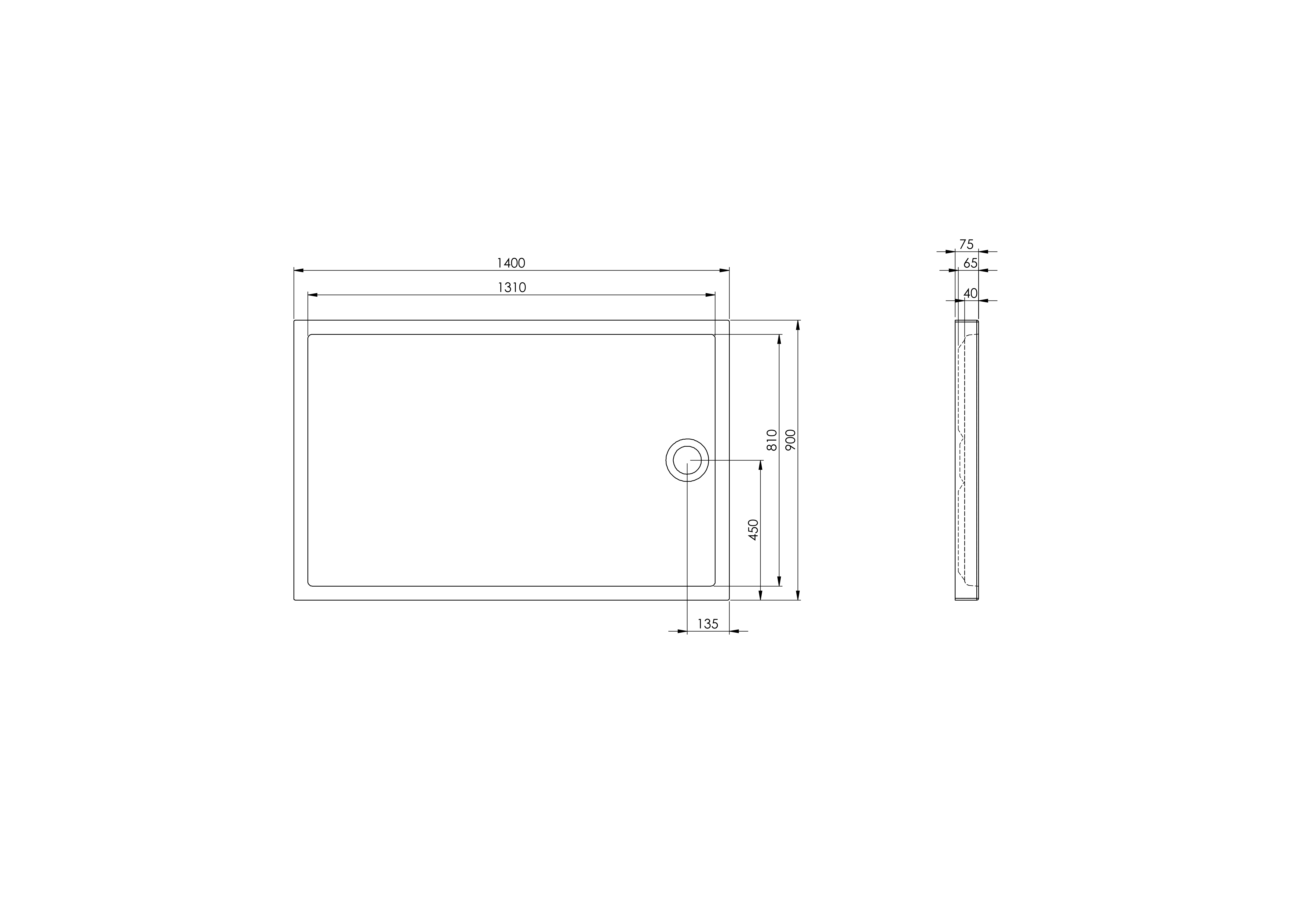 Душова кабіна GRANADA 140x90x7,5 MEDIO A276344000