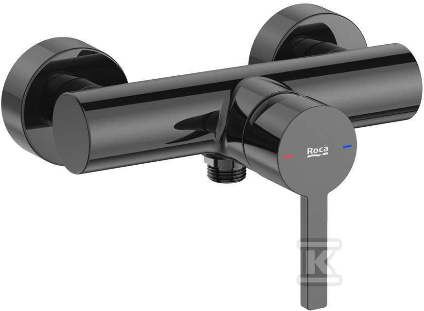 Цей одноручковий настінний змішувач для душу Roca Naia Black – пропозиція для тих, хто цінує сучасний дизайн і високу якість виготовлення. Оздоблення в кольорі titanium black, тобто металевої чорноти, додасть ванній кімнаті елегантності та характеру. Змішувач чудово поєднується як зі світлою керамікою, так і з іншими чорними елементами обладнання.