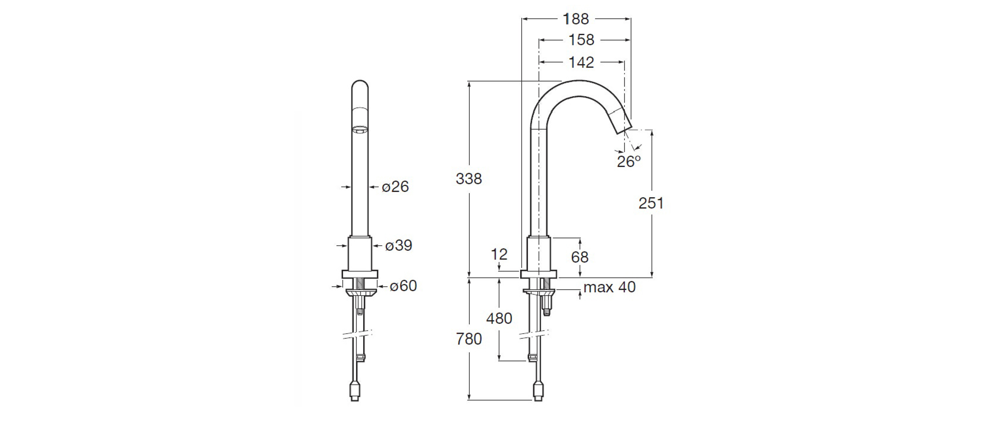Електронний високий змішувач для раковини LOFT-E, живлення DC батареї 1,5V A5A3743C00