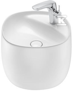 У стандартному обладнанні є корок зливу з керамічною накладкою, який підкреслює унікальний характер умивальника та додає йому елегантності. Відсутність отвору для переливу мінімізує ризик затоплення, а ретельно опрацьована форма чаші забезпечує комфорт використання. Настінний монтаж дозволяє заощадити простір та полегшує підтримку чистоти у ванній кімнаті.