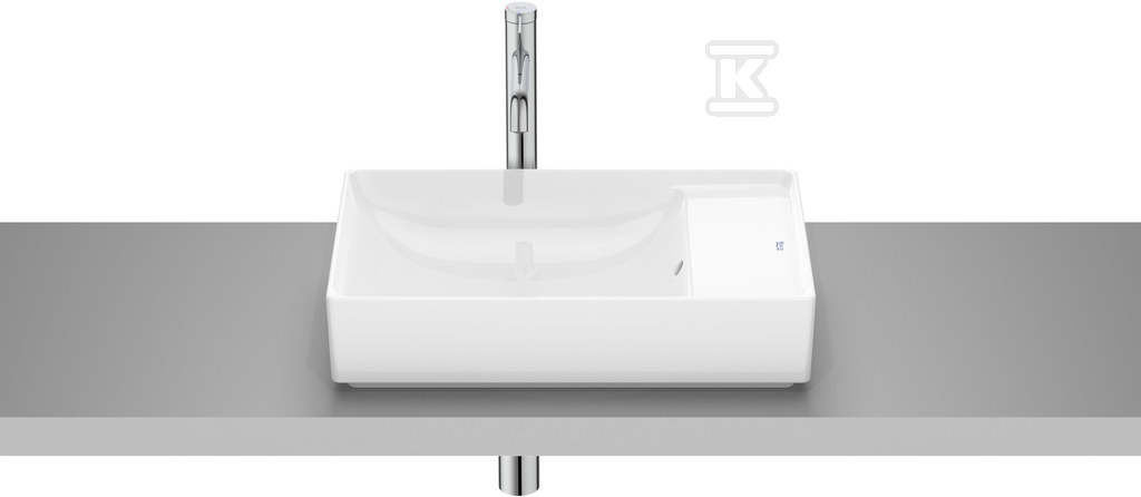 Практична полиця, інтегрована з умивальником, є додатковим місцем для зберігання косметики та аксесуарів для ванної кімнати. Відсутність отвору під батарею дає свободу в оформленні та дозволяє підібрати арматуру до індивідуальних уподобань – хоча слід пам'ятати, що виготовлення отвору під батарею на полиці неможливе. Умивальник оснащений переливом, що забезпечує безпеку використання та запобігає затопленню ванної кімнати у разі забуття про закриття води.