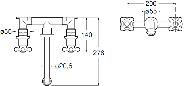 Змішувач для раковини CARMEN двовентильний настінний триотворовний з корком Click-Clack A5A474BC00