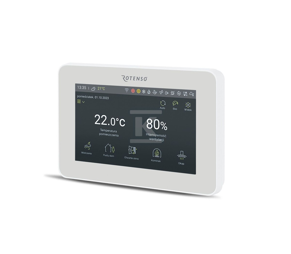 Панель управління iSENSE 5i White є центральним елементом управління рекуператором Rotenso Wentilo, забезпечуючи комфорт і точність у контролі якості повітря у вашому домі. Обладнана кольоровим сенсорним екраном, пропонує інтуїтивне управління та доступ до розширених функцій.