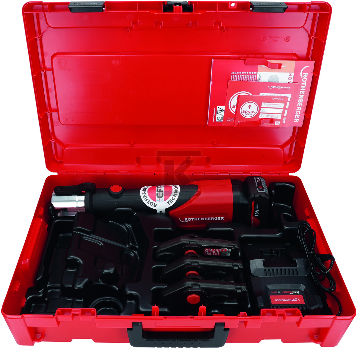 Обтискна машина ROMAX 4000 сумісна з різними типами труб і з'єднувачів, виготовлених з металу, пластику та багатошарових труб (MSR) до діаметру 110 мм. Обертова головка в діапазоні 270° полегшує роботу в тісних просторах. Акумулятор літій-іонний 18 В з ємністю 4.0 Ah забезпечує тривалу роботу без необхідності частого заряджання (час заряджання приблизно 80 хвилин). Можливість використання системних акумуляторів AMPShare та сумісність з акумуляторами METABO додатково підвищують гнучкість використання. Набір поставляється у міцній валізі ROCASE з вкладкою, призначеною для ROMAX 4000, що забезпечує безпечне транспортування та зберігання інструменту та аксесуарів.