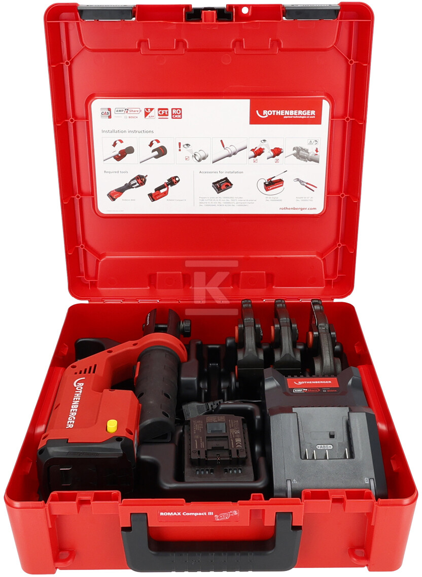 Набір ROMAX Compact III – це електрогідравлічна обтискна машинка, призначена для надійного з'єднання фітингів у гідравлічних, опалювальних та кліматичних системах. Розроблена з урахуванням потреб професійних монтажників, але також інтуїтивно зрозуміла для досвідчених користувачів, вона пропонує швидке та точне обтискання в різних умовах роботи. Це ідеальне рішення як на будівництві, так і під час обслуговування існуючих інсталяцій.