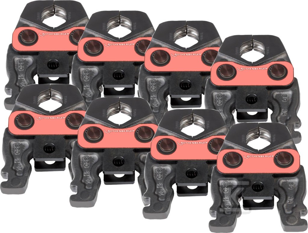 Щелепи виготовлені з високоякісних матеріалів, що гарантує їх довговічність і стійкість до пошкоджень. Прецизійне виконання забезпечує точне обтискання, мінімізуючи ризик протікання та аварій. Комплектна конструкція дозволяє швидко замінювати щелепи, що перекладається на економію часу під час роботи. Застосування в наборі різних розмірів щелеп дозволяє адаптувати до конкретних потреб інсталяції.