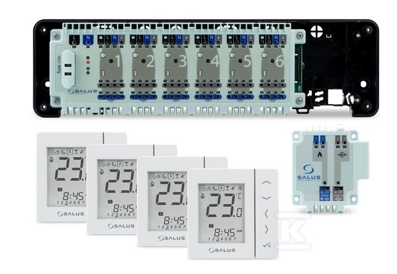 Комплект дротового керування підлоговим опаленням без управління через Інтернет SALUS StartPack Standard: склад комплекту: KL06-M, PL07, 4 x VS30W 94507001