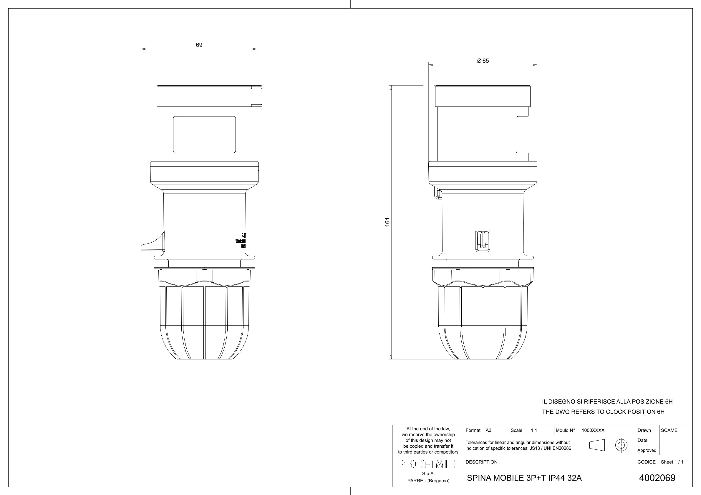 Переносна силова вилка, закріплювана гвинтами, 32A 3P+E 400V, OPTIMA, 213.3236
