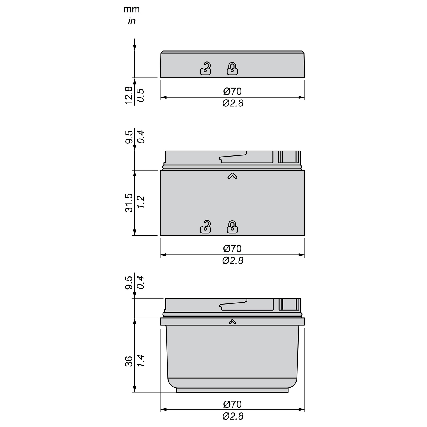 Базовий модуль, світлова колона Harmony XVB7, Ø70mm, база 24V AC/DC з адаптером і кришкою, сірий XVB7C21B