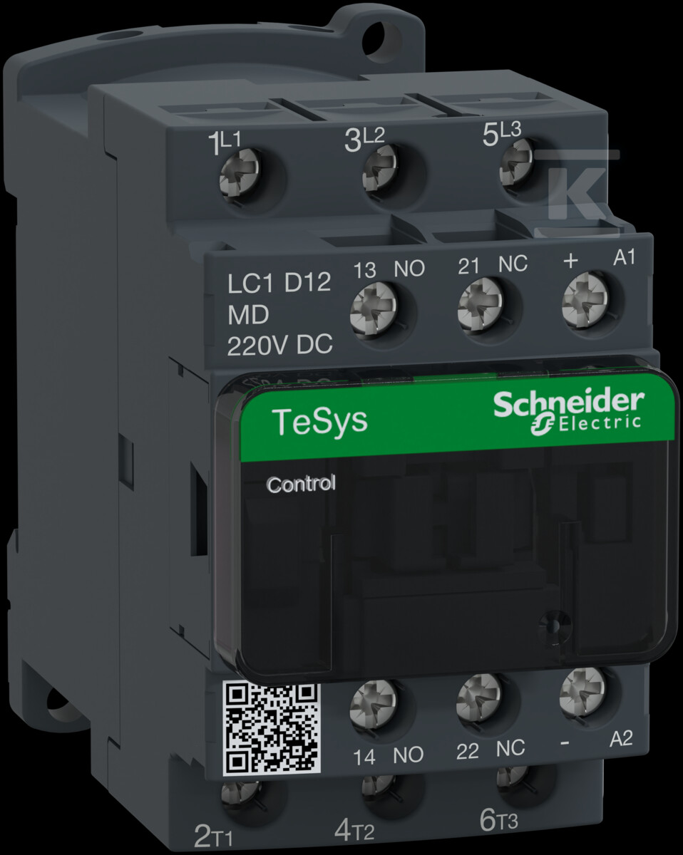 Цей контактор потужності TeSys D є надійним елементом для керування трифазними двигунами та електричними ланцюгами. Призначений для роботи з напругою 220V DC, забезпечує ефективне вмикання та вимикання навантажень потужністю до 5.5kW при 400V AC-3. Конструкція контактора, з трьома головними полюсами (3NO) та вбудованими допоміжними контактами (1NO + 1NC), дозволяє на гнучке використання в різноманітних промислових та комерційних застосуваннях.
