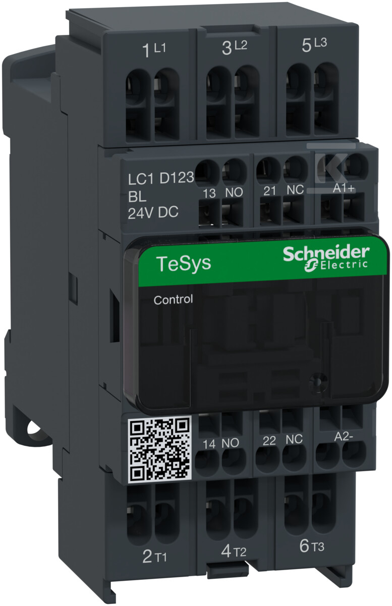 Контактор силовий TeSys D AC3 12A 3P 1NO 1NC котушка 24VDC низьке споживання LC1D123BL
