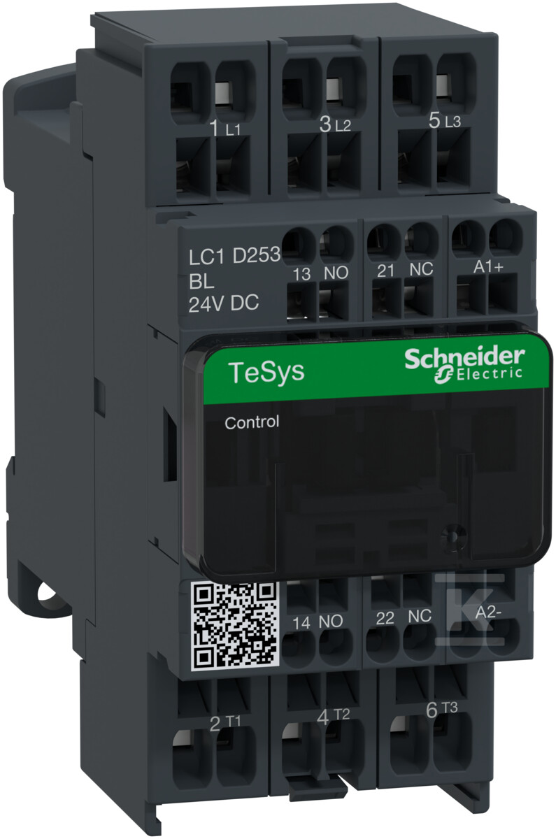 Контактор LC1D25BL вирізняється міцною конструкцією та продуманими рішеннями. Використовує пружинні затискачі, що значно полегшує та прискорює встановлення, усуваючи необхідність використання складних інструментів. Має три головні нормально відкриті контакти (3NO) та один допоміжний нормально відкритий (1NO) і один нормально закритий (1NC) контакт, що дає велику гнучкість у конфігурації ланцюгів керування. Інтегровані допоміжні контакти в стандартному дзеркальному виконанні (NO+NC) дозволяють безпосередньо використовувати контактор в ланцюгах безпеки відповідно до норми IEC.