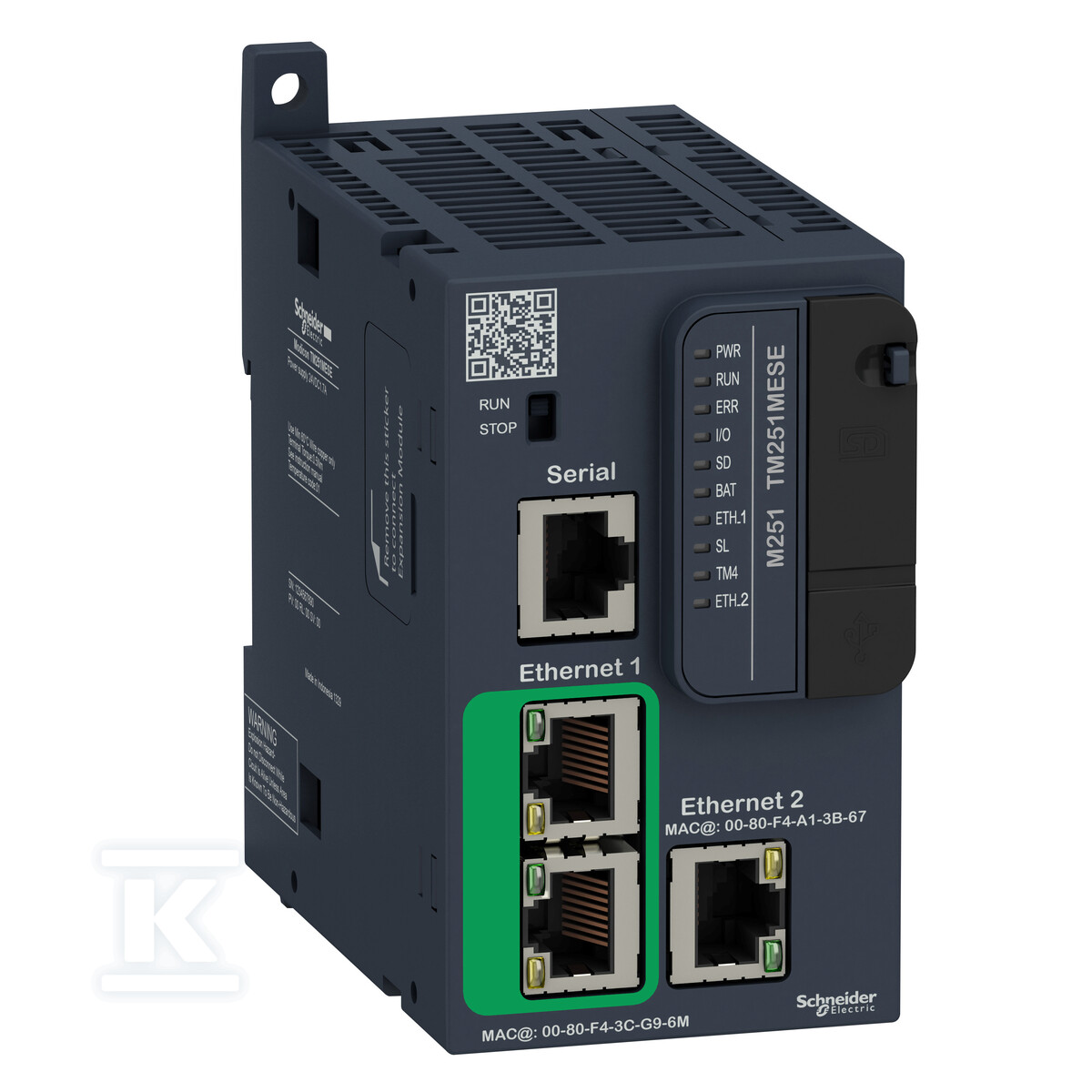 Контролер TM251MESE — це модульний елемент серії Modicon M251 фірми Schneider Electric, призначений для автоматизації та керування промисловими процесами. Пристрій пропонує широкі можливості комунікації завдяки вбудованим інтерфейсам Ethernet, RS-232 та RS-485, а також порту USB. Це компактне рішення, ідеальне для створення надійних систем керування.