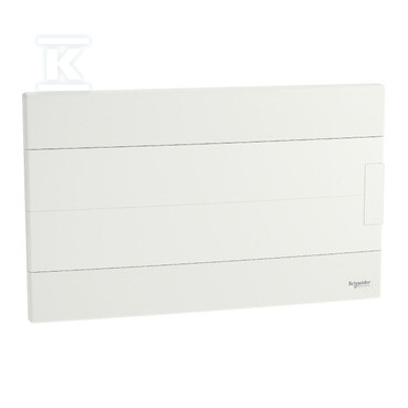 Коробка вміщує один ряд модульної апаратури, пропонуючи простір для 18 модулів стандартної ширини 18 мм. Завдяки цьому в ній можна розмістити широкий вибір захисних та керуючих пристроїв. Постачається з двома клемними колодками – заземлюючою та нейтральною – обладнаними 16 отворами (8x16mm² + 8x10mm²) що полегшує підключення проводів. Зворотні двері суцільні білого кольору (RAL 9003) відкриваються під кутом 180°, забезпечуючи вільний доступ до внутрішньої частини коробки. Кабелі можна вводити через отвори для труб, розташовані з чотирьох сторін коробки, що забезпечує велику гнучкість під час монтажу. У комплект входить підтинькова задня касета, знімний каркас з DIN-рейкою та передня кришка з вирізом.
