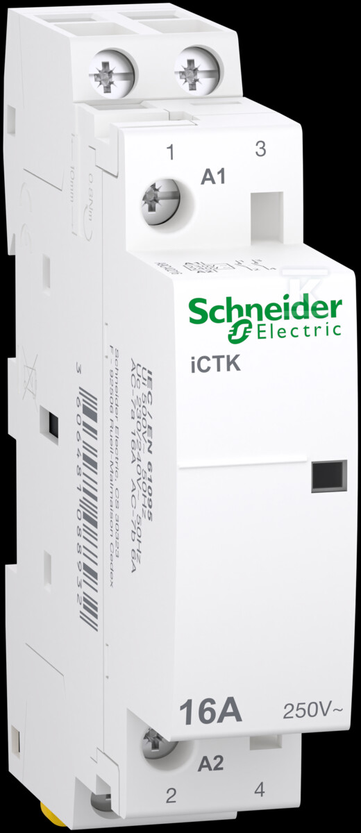 Модульний контактор, Acti9 iCTK50-16-20-230 16A 2NO 50Hz 230/240 VAC, без можливості розширення за допомогою допоміжних контактів A9C40216