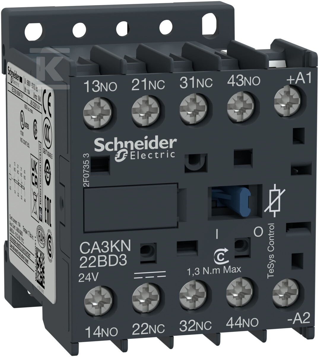 Мініатюрний допоміжний контактор, TeSys K, 2NO 2NC, котушка 24VDC, гвинтові клеми CA3KN22BD3