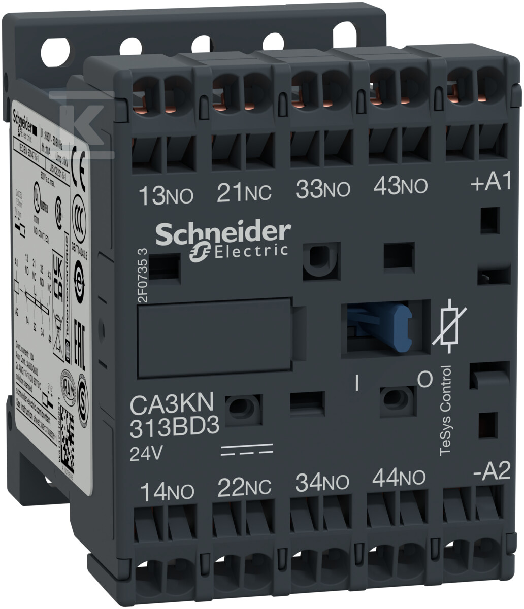 Мініатюрний допоміжний контактор, TeSys K, 2NO 2NC, котушка 24VDC, пружинні затискачі CA3KN313BD3